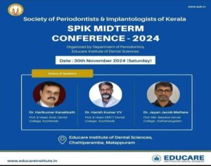 Dr Anagha Anil, Post graduate student, won second prize in poster presentation under review category at 17th Spikcon Annual conference held at KMCT Dental College, Calicut in April 2025